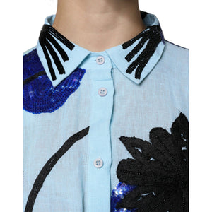 Christian Pellizzari Light Blue Floral Embellished Shirt Maxi Dress