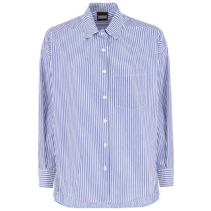 Comme des Fuckdown striped cotton shirt with chest pocket and logo printed on the back