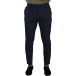 ارتقي بخزانة ملابسك مع هذا البنطلون الأنيق ذو اللون الأزرق الداكن ذو القصة الضيقة من Dolce & Gabbana. مثالي لأي مناسبة رسمية أو ذكية غير رسمية، هذا البنطال يضفي الأناقة بتصميمه الأنيق. صُنعت في إيطاليا من مزيج الصوف والحرير الفاخر، مما يضمن الراحة دون المساس بالأناقة. فقط القطعة المناسبة لإصدار بيان مصقول.