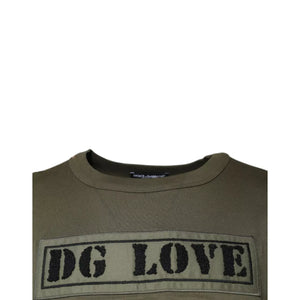 Dolce & Gabbana Army Green DG Love Cotton Crew Neck T-shirt