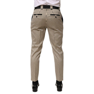 Dolce & Gabbana Beige Black Striped Cotton Slim Fit Trousers Pants