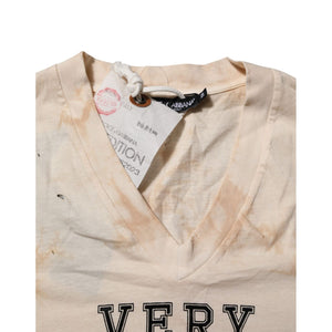 Dolce & Gabbana Beige Logo Print Short Sleeve V-neck T-shirt
