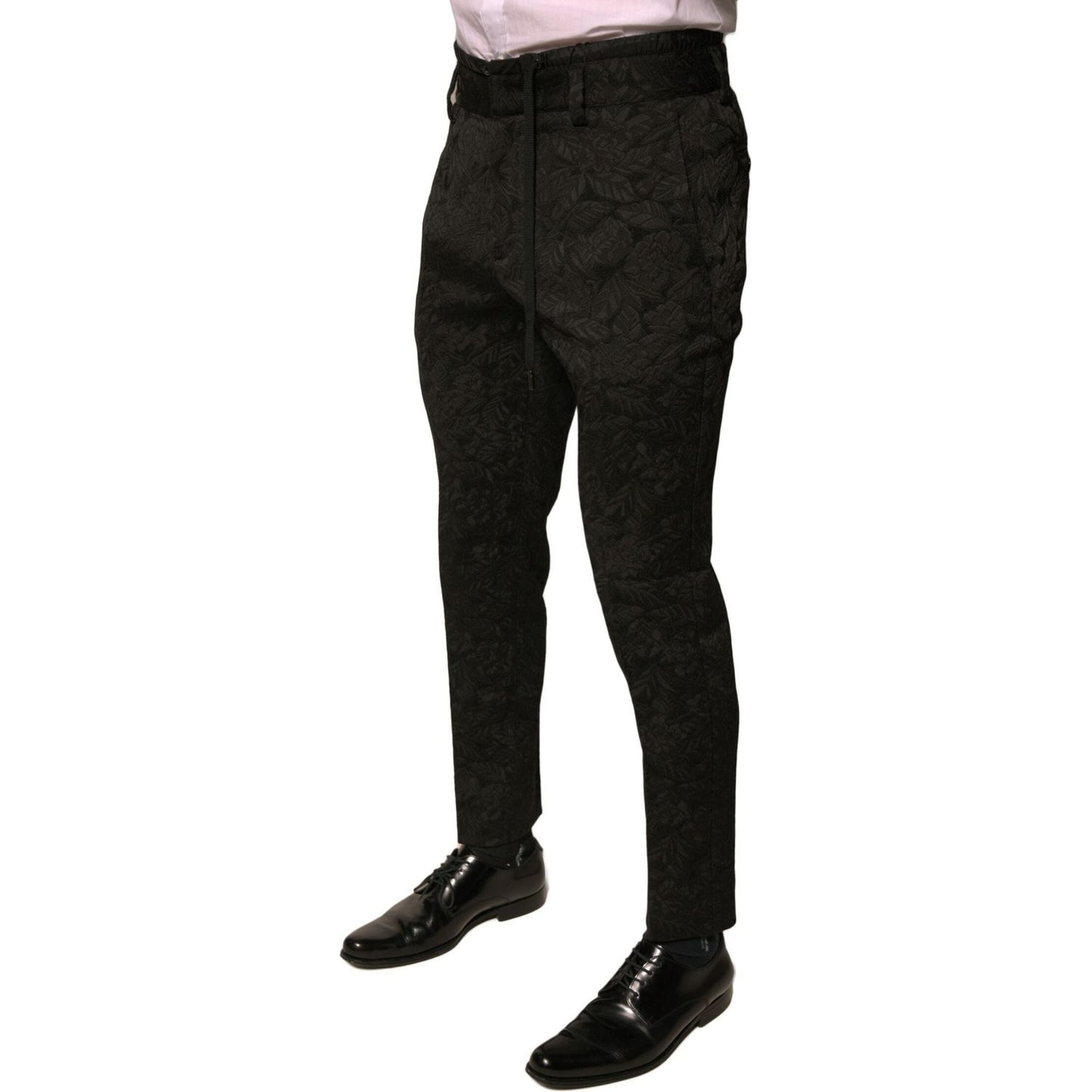 Dolce & Gabbana Black Brocade Polyester Skinny Men Dress Pants