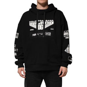 Dolce & Gabbana Black Cotton DG Milano Logo Print Hoodie Sweater