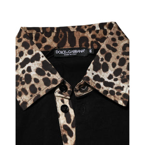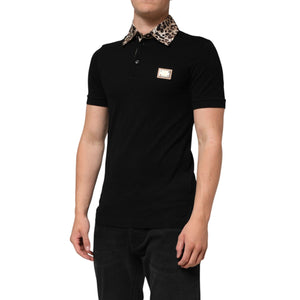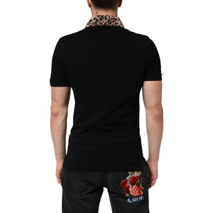 Dolce & Gabbana Black Cotton Leopard Collar Polo T-shirt
