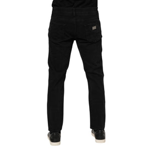 Dolce & Gabbana Black Cotton Logo Plaque Slim Fit Denim Jeans