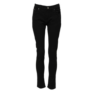 Dolce & Gabbana Black Cotton Logo Skinny Mid Waist Denim Jeans