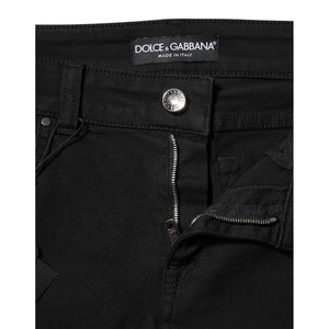 Dolce & Gabbana Black Cotton Logo Skinny Mid Waist Denim Jeans