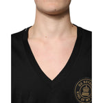Dolce & Gabbana Black Cotton Logo Vneck Short Sleeve T-shirt