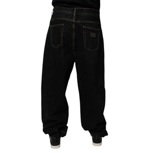 Dolce & Gabbana Black Cotton Mid Waist Wide Leg Denim Jeans