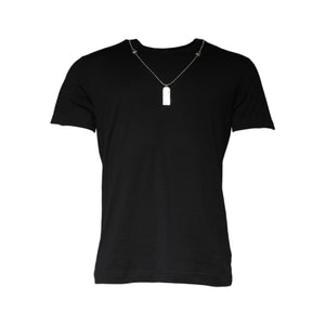 Dolce & Gabbana Black Cotton Necklace Embellished T-shirt