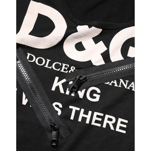 This limited edition, handmade black cotton tank features bold D&G logo print on the front with text details “King Was There”. It has a unique zipper detail across the chest for a modern, edgy look. Perfect for casual wear or layering.