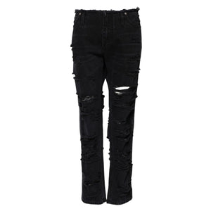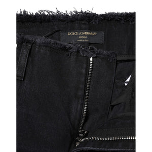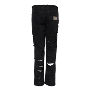 Dolce & Gabbana Black Cotton Tattered Mid Waist Denim Jeans