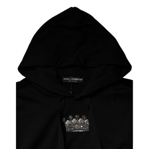 Dolce & Gabbana Black Crown Cotton Hooded Sweatshirt Sweater