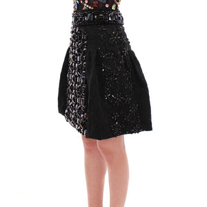 Dolce & Gabbana Black Crystal Handmade Above Knee Skirt