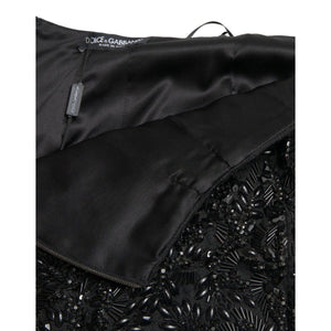 Dolce & Gabbana Black Crystal Handmade Knee Pencil Skirt