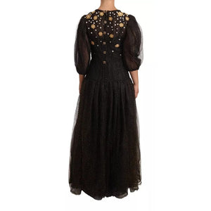 Dolce & Gabbana Black Crystal Floral Maxi Ball Gown Dress