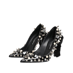 Dolce & Gabbana Black Crystals Studs Stiletto Pumps Shoes
