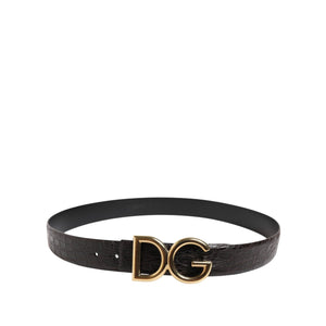Dolce & Gabbana Black Exotic Leather DG Logo Buckle Belt