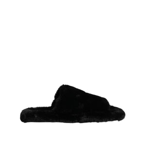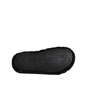 Dolce & Gabbana Black Faux Fur Flats Men Sandals Shoes