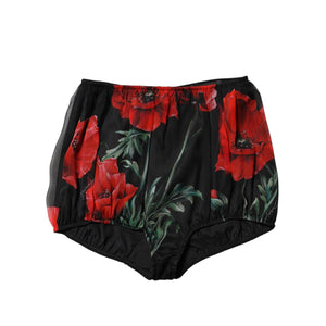 Dolce & Gabbana Black Floral High Waist Women Hot Pants Shorts