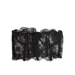 Dolce & Gabbana Black Floral Lace Bustier Bralette Top Underwear
