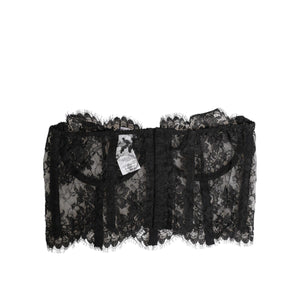 Gorgeous brand new, 100% Authentic Dolce & Gabbana black lace bustier top. Crafted in Italy with delicate floral lace, this piece features structured cups, scalloped lace trims, and a semi-sheer design for an alluring and sophisticated look. Perfect to wear as lingerie or as a statement top under a blazer or jacket.