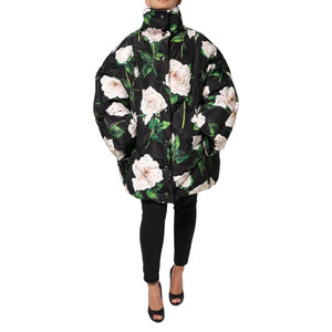Dolce & Gabbana Black Floral Print Puffer Quilted Jacket