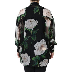 Dolce & Gabbana Black Floral Print Silk Cardigan Blouse Top