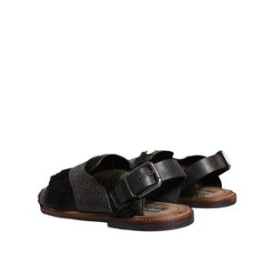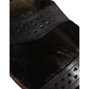 Dolce & Gabbana Black Gazelle Hair Leather Flats Sandals Shoes