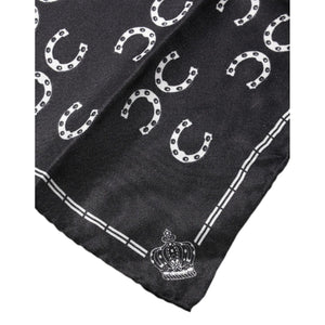 Dolce & Gabbana Black Horseshoe Silk Square Handkerchief Scarf