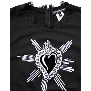 Dolce & Gabbana Black Lace Sheer Sacred Heart Crew Neck Top