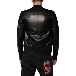 Dolce & Gabbana Black Lambskin Full Zip Biker Blouson Jacket