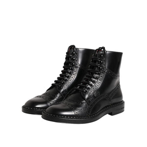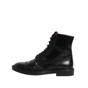 Dolce & Gabbana Black Leather Lace Up Mid Calf Boots Shoes