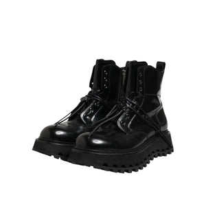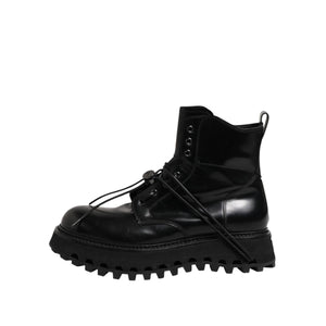 Dolce & Gabbana Black Leather Logo Ankle Boots Lace Up Shoes