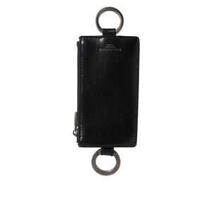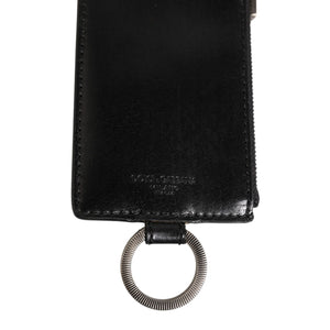 Dolce & Gabbana Black Leather Logo Embossed Lanyard Card Holde Wallet