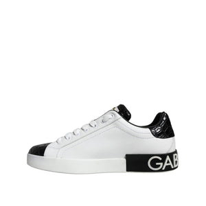• Dolce & Gabbana Black Leather Logo Portofino Sneaker Shoes