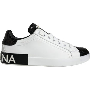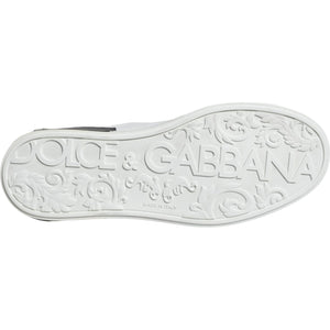 Dolce & Gabbana Black Leather Logo Portofino Sneaker Shoes