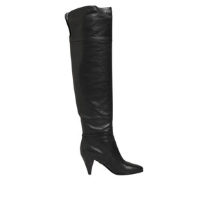 Dolce & Gabbana Black Leather Over-The-Knee DG Boots Shoes