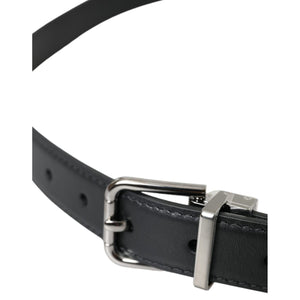 Dolce & Gabbana Black Leather Silver Metal Buckle Men Belt