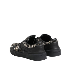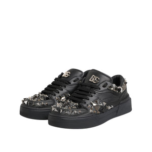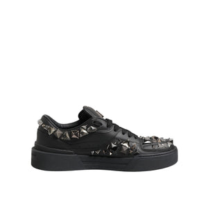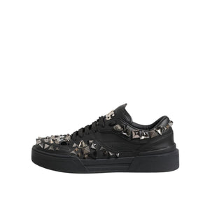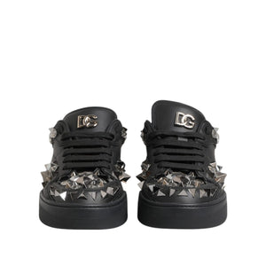 Dolce & Gabbana Black Leather Studded Low Top Sneakers Shoes