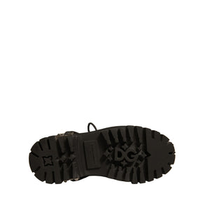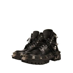 • Dolce & Gabbana Black Leather Studded Trekking Boots Shoes