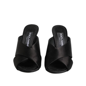 Dolce & Gabbana Black Logo KEIRA Satin Slides Sandals Shoes