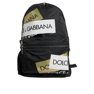 Dolce & Gabbana Black Logo Tape Polyamide School Travel Backpack Bag