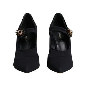 Dolce & Gabbana Black Mary Jane Stretch Crystal Pumps Shoes