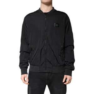 Dolce & Gabbana Black Nylon Logo Full Zip Bomber Jacket