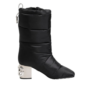 Dolce & Gabbana Black Padded Mid Calf Logo Heel Boots Shoes