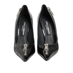 Dolce & Gabbana Black Patent Leather Zipper Heels Pumps Shoes