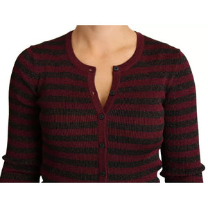 Dolce & Gabbana Black Red Striped Womens Cardigan Sweater