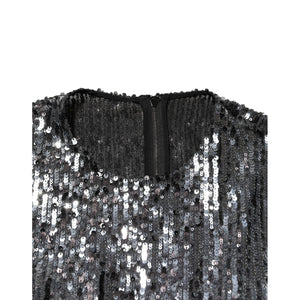Dolce & Gabbana Black Sequined Long Sleeves Midi A-line Dress
